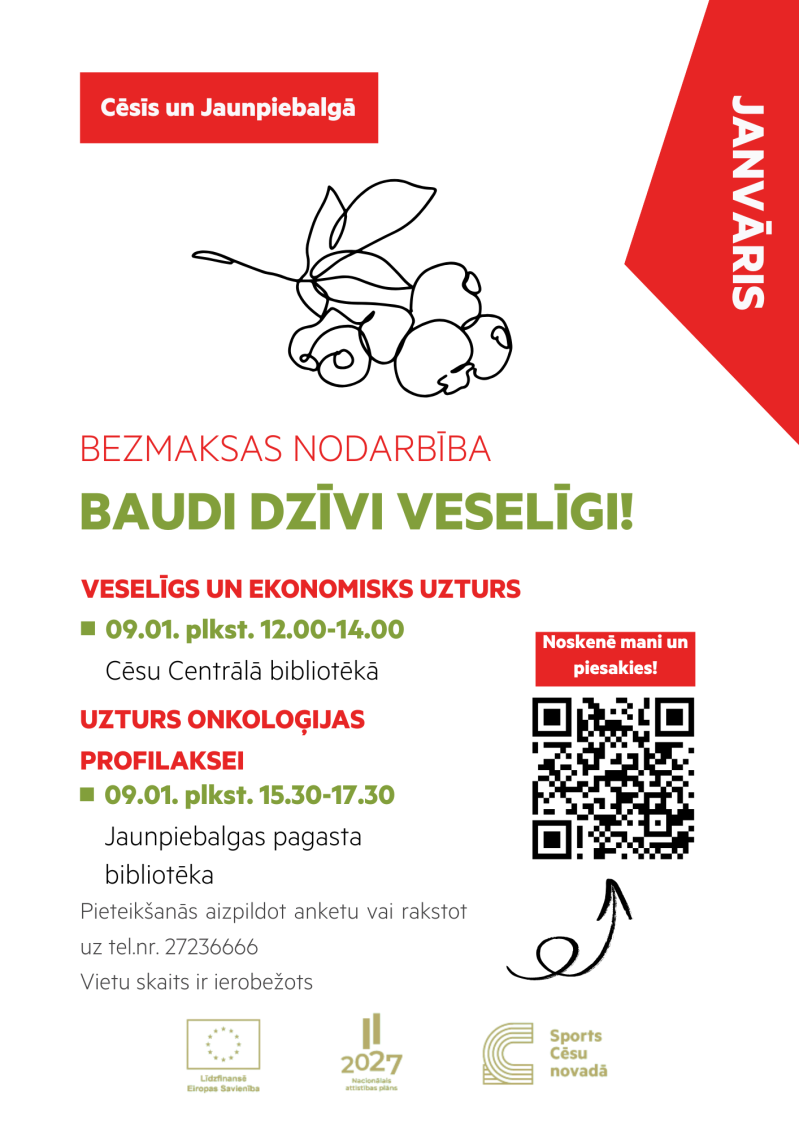 Piektdien, 9. janvārī, plkst. 15.30-17.30 Jaunpiebalgas pagasta bibliotēkā notiks bezmaksas nodarbība "Baudi dzīvi veselīgi!".