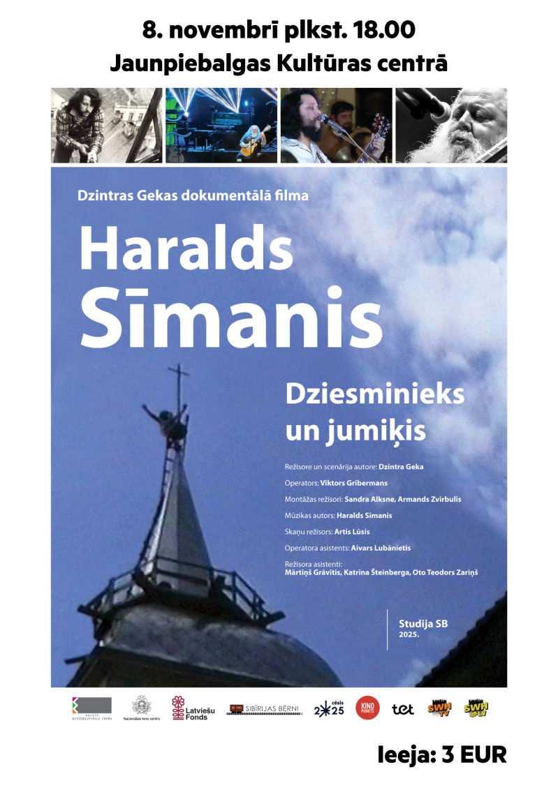 Sestdien, 8. novembrī, plkst. 18.00 Jaunpiebalgas Kultūras centrā būs skatāma režisores Dzintras Gekas dokumentālā filma par iemīļoto dziesminieku Haraldu Sīmani “Haralds Sīmanis. Dziesminieks un jumiķis”.