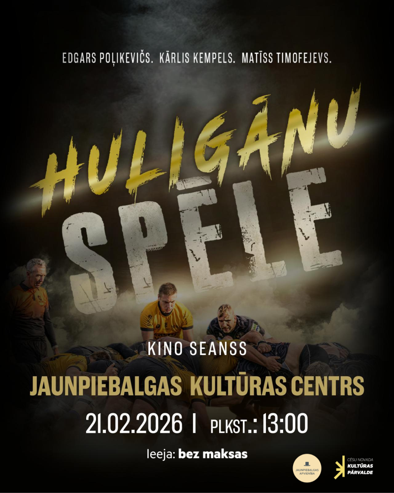 Sestdien, 21. februārī, plkst. 13.00 Jaunpiebalgas Kultūras centrā būs skatāma dokumentālā filma par regbija spēli Latvijā “HULIGĀNU SPĒLE”.