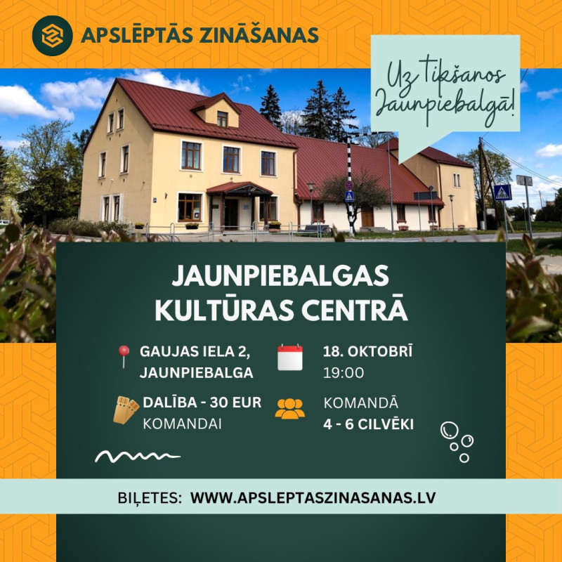 Sestdien, 18. oktobrī, plkst. 19.00 Jaunpiebalgas Kultūras centrā notiks erudīcijas spēle “Apslēptās zināšanas”.