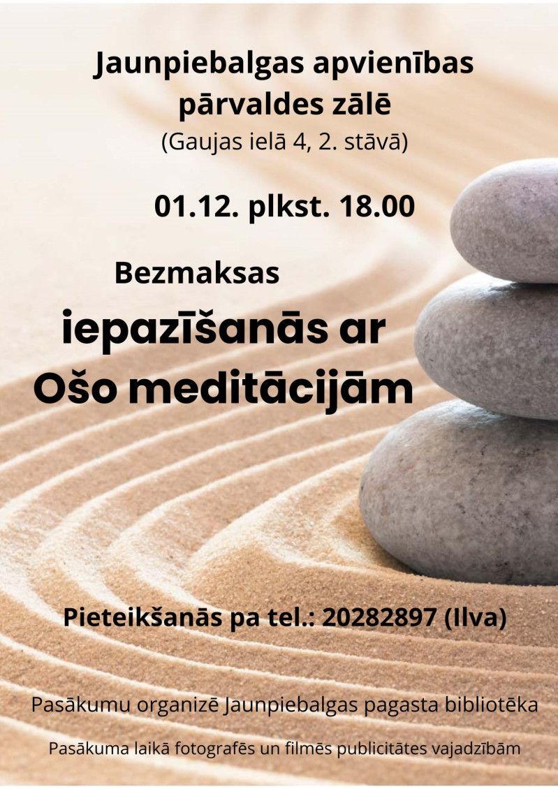 Pirmdien, 1. decembrī, plkst. 18.00 Jaunpiebalgas apvienības pārvaldes zālē būs iespēja iepazīties ar Ošo meditācijām.