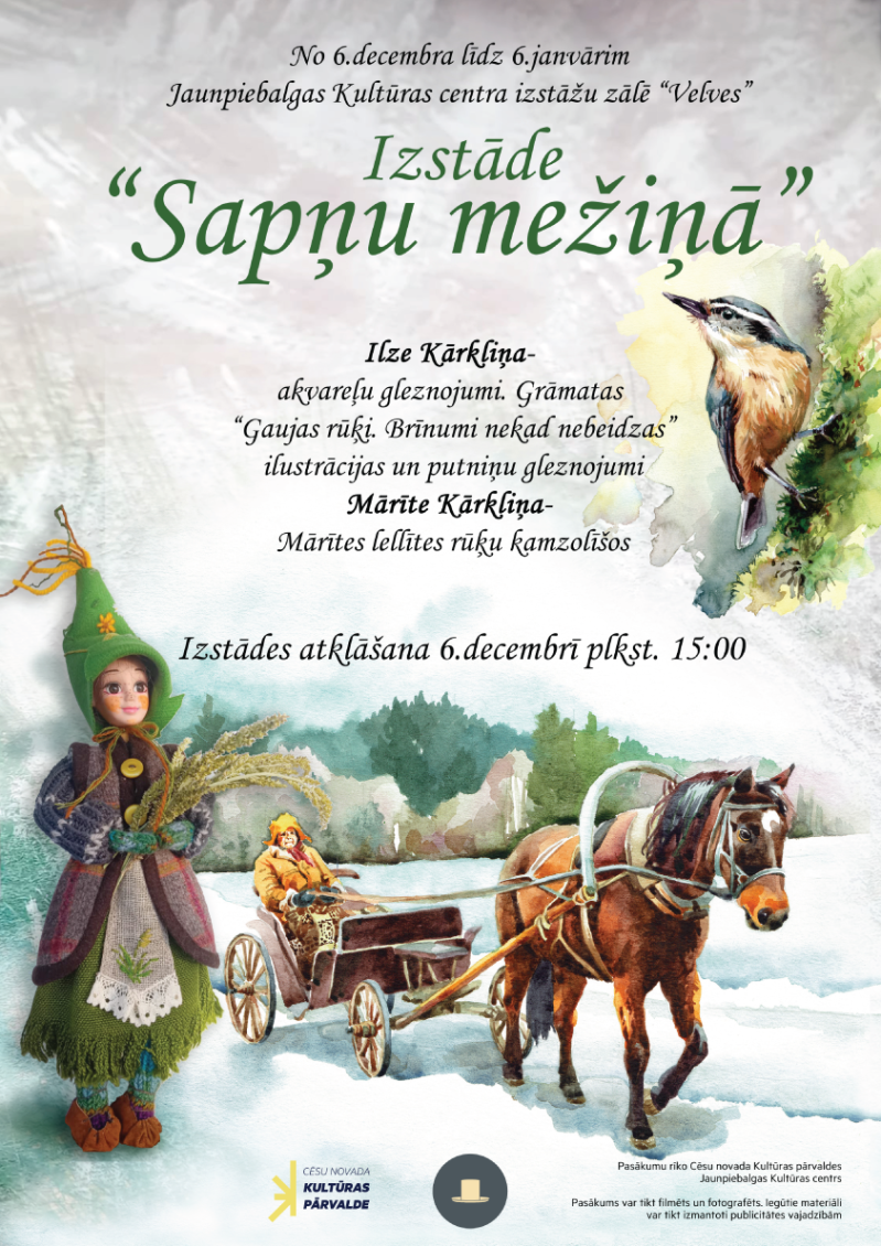 No 6. decembra līdz 2026. gada 6. janvārim Jaunpiebalgas Kultūras centra izstāžu zālē “Velves” būs skatāma izstāde “Sapņu mežiņā”.