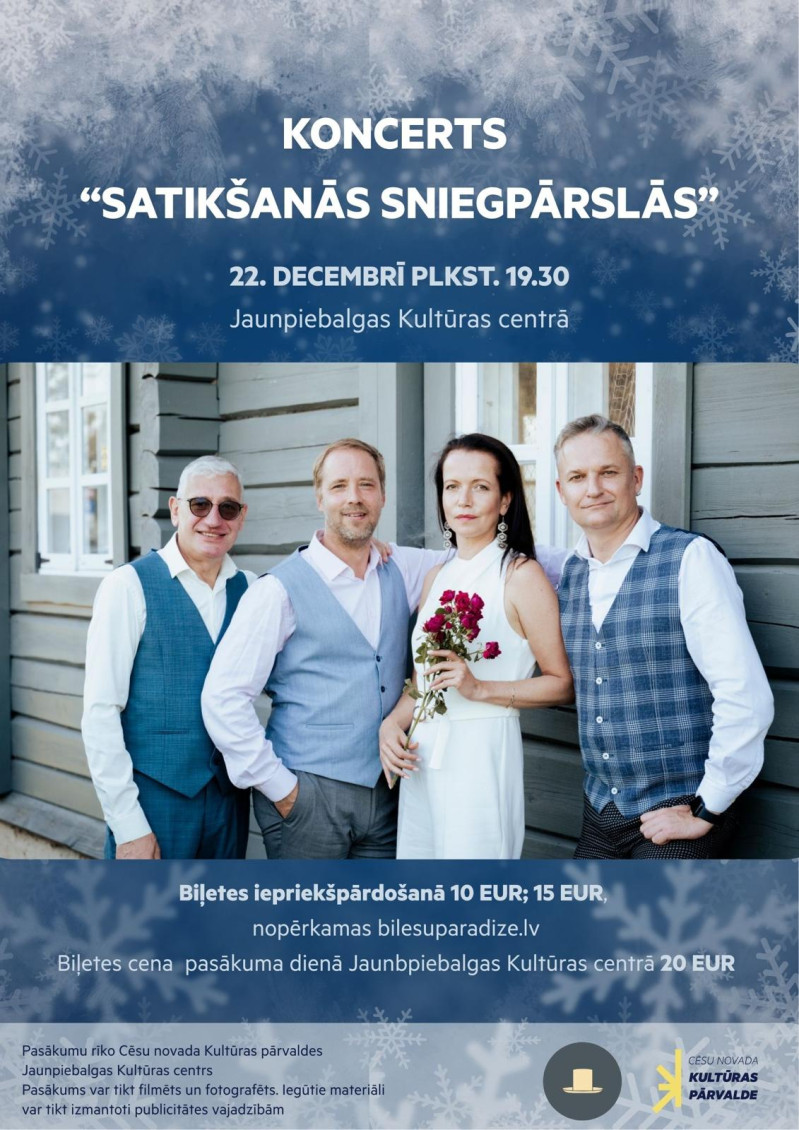Pirmdien, 22. decembrī, plkst. 19.30 Jaunpiebalgas Kultūras centrā izskanēs koncertprogramma “Satikšanās sniegpārslās”.