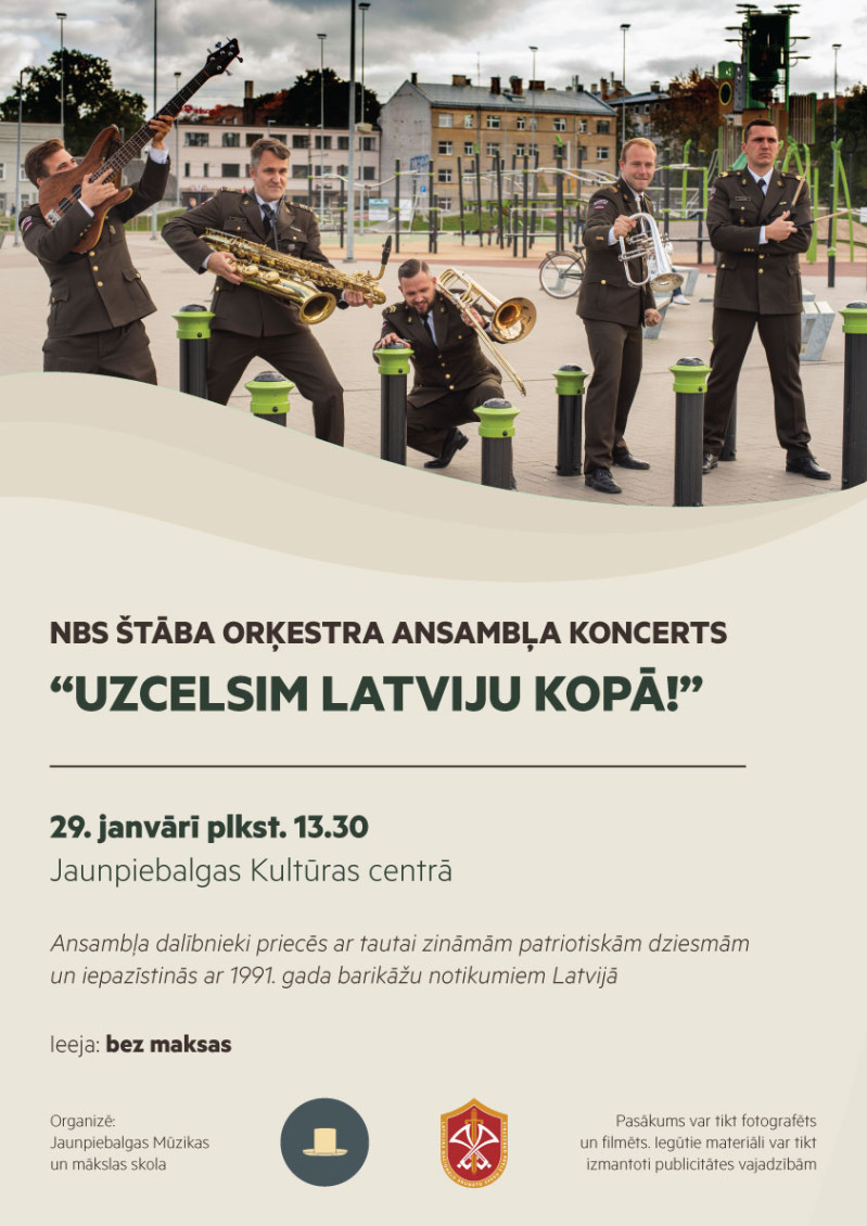 Ceturtdien, 29. janvarī, plkst. 13.30 Jaunpiebalgas Kultūras centrā notiks NBS Štāba orķestra ansambļa koncerts "Uzcelsim Latviju kopā".