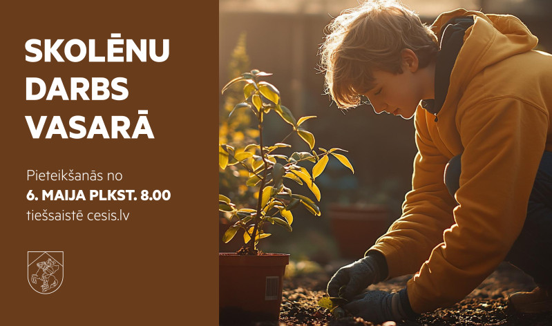 Arī šogad no 6. maija plkst. 8.00 aicināsim skolēnus pieteikties vakantajām darba vietām vasaras brīvlaikā. Pieteikšanās uz darba vietām noritēs elektroniski, aizpildot pieteikšanās anketu.