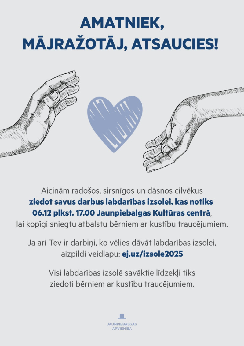 Ja arī Tev ir darbiņi, ko vēlies dāvāt labdarības izsolei, aizpildi veidlapu: ej.uz/izsole2025.