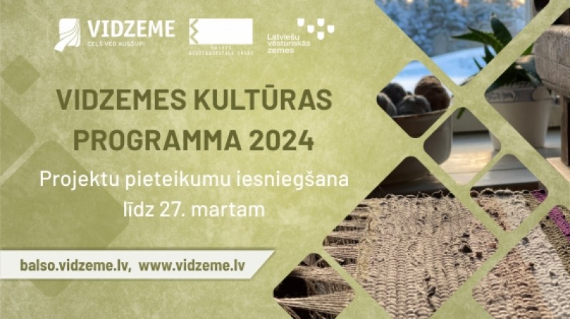 Vidzemes plānošanas reģions izsludinājis Valsts kultūrkapitāla fonda mērķprogrammas "Latviešu vēsturisko zemju attīstības programma" projektu konkursu "Vidzemes kultūras programma 2024". Tā mērķis ir sekmēt kvalitatīva un daudzveidīga kultūras piedāvājuma pieejamību sabiedrībai, jaunradi, rūpēties par Vidzemes kultūras daudzveidības saglabāšanu un attīstību.
